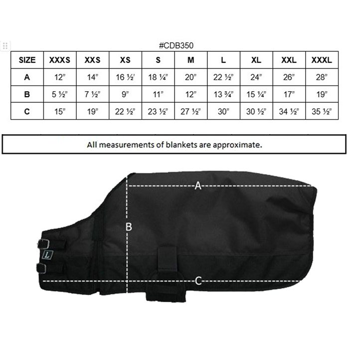 It features an adjustable belly wrap with elastic for comfort and quick-grip closure, shoulder gussets for freedom of movement, and rear elastic leg straps that help keep the blanket in place. A single buckle front on smaller sizes (3XS-MED) and a double buckle front on the larger sizes (LRG-3XL) for the best fit.