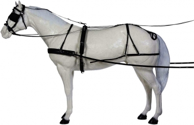Mini Horse Nylon Coated Synthetic Harness. Perfect for the show ring or on the farm. This set features an adjustable blind bridle with overcheck, Black fleece breast collar, a sturdy saddle, breeching, crupper, and lines. Double buckle adjustment just about everywhere to fit a wide range of breeds.