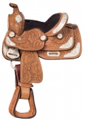 It features full quarter horse bars, blevins quick-change buckles, suede seat, and more! Three seat sizes to choose from in two leather finishes.