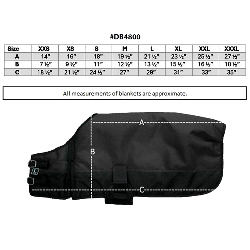 It features an adjustable belly wrap with elastic for comfort and quick-grip closure, shoulder gussets for freedom of movement, and rear elastic leg straps that help keep the blanket in place. A single buckle front on smaller sizes (3XS-MED) and a double buckle front on the larger sizes (LRG-3XL) for the best fit.