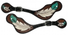 Rugged Ride Deluxe Leather Browband Headstall and Breast Collar Set - Handpainted Feather and Tooled