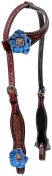 Immerse yourself in the charm of the honeycomb basketweave tooled pattern that is handcrafted onto the vintage oiled leather. The leather flowers, meticulously shaped and placed, add a unique touch that beautifully complements the intricacies of the tooling. The rhinestone copper concho bit ends catch the light with every movement and add a subtle hint of glamour that sets this piece apart. The adjustable stainless steel buckles provide versatility, allowing you to tailor the fit to your horse's needs while maintaining an elegant appearance.