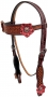 Immerse yourself in the charm of the honeycomb basketweave tooled pattern that is handcrafted onto the vintage oiled leather. The leather flowers, meticulously shaped and placed, add a unique touch that beautifully complements the intricacies of the tooling. The rhinestone copper concho bit ends catch the light with every movement and add a subtle hint of glamour that sets this piece apart. The adjustable stainless steel buckles provide versatility, allowing you to tailor the fit to your horse's needs while maintaining an elegant appearance.