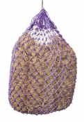 Extra strong hay net featuring metal rings at the bottom and around the top enabling easy filling and tying. Mesh features 2" holes to reduce waste and keep your horse nibbling longer at the show, the campground, or in his stall!