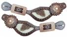 This seat features a Dark Oil leather finish with hair on cowhide inlay with leather and Bronze accents and hardware.The one ear headstall with reins had Bronze etched buckles and Bronze dots with a unique flower concho and bing center. It also has Chicago screw bit ends. Includes matching breast collar.