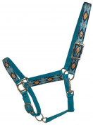 Three Ply Pink Nylon adjustable halter with Southwest Cross design overlay. It features a snap at the throat latch and easily adjusts at crown and nose.