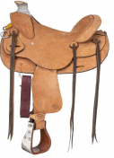 Silver Royal Williston Wade Saddle is made for ranch work! The roughout finish protects against scuffs and scratches. Features include wrapped horn, saddle strings, Tough1 Quick Change stirrup buckles and polished Stainless Steel stirrups for all day comfort. (NOTE: Measurements vary with saddle size).