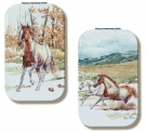 Keep your medication and favorite mints on hand or jewelry safe for travel. An easy size to slip into your purse, pocket bag, or tote and an ideal gift idea for family and friends. Includes small mirror in lid and 7 compartments in tray. Dependable metal clasp keeps contents secure. Artwork features two wild horses with mountains and wide open plains in the background.